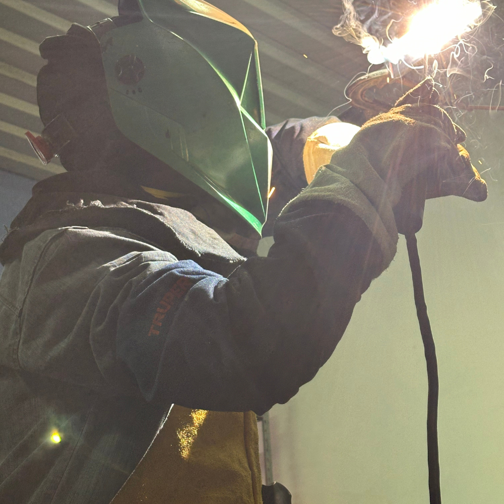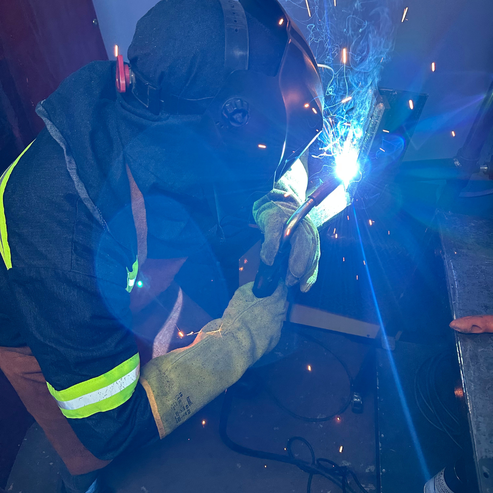 Soldadura por arco eléctrico con electrodo revestido.